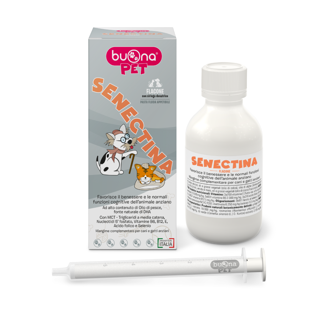 Composizione: Olio di pesce (18% EPA, 12% DHA) 33,35%, oli e grassi vegetali (olio di semi di girasole raffinato), proteine animali idrolizzate (origine avicola), destrosio, lieviti inattivati (lievito di birra), MCT-acidi grassi esterificati con glicerolo (acido caprilico, acido caprico da olio di cocco) 4%, prodotti del lievito (nucleotidi 5’ fosfato da lievito di birra) 4%, palmitoiletanolamide (PEA) 2%, mono-, di- e trigliceridi di acidi grassi (acido palmitico), alghe essiccate (Haematococcus pluvialis-2,5% Astaxantina) 0,75%, funghi essiccati (Ganoderma lucidum-polvere) 0,5%, acidi grassi esterificati con glicerolo (acido oleico), oli e grassi vegetali (olio di colza), olio di alghe (Schizochytrium Sp.-40% DHA), amido di mais, oli e grassi vegetali (olio di cocco frazionato).
