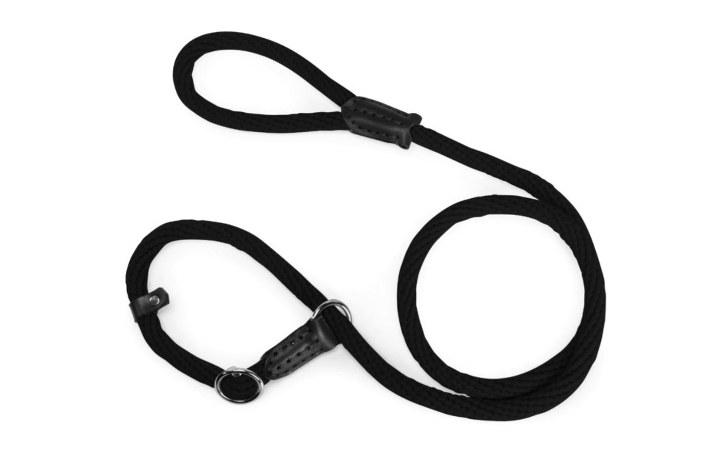 Il guinzaglio in corda tubolare è “gentile” anche su una mano di donna.