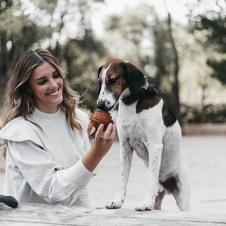 Si può anche farcire come un Kong: Il gioco può essere farcito con i nostri snack o biscotti o masticativi per renderlo ancora più attraente. Se farcito con materiale umido può essere anche congelato.
